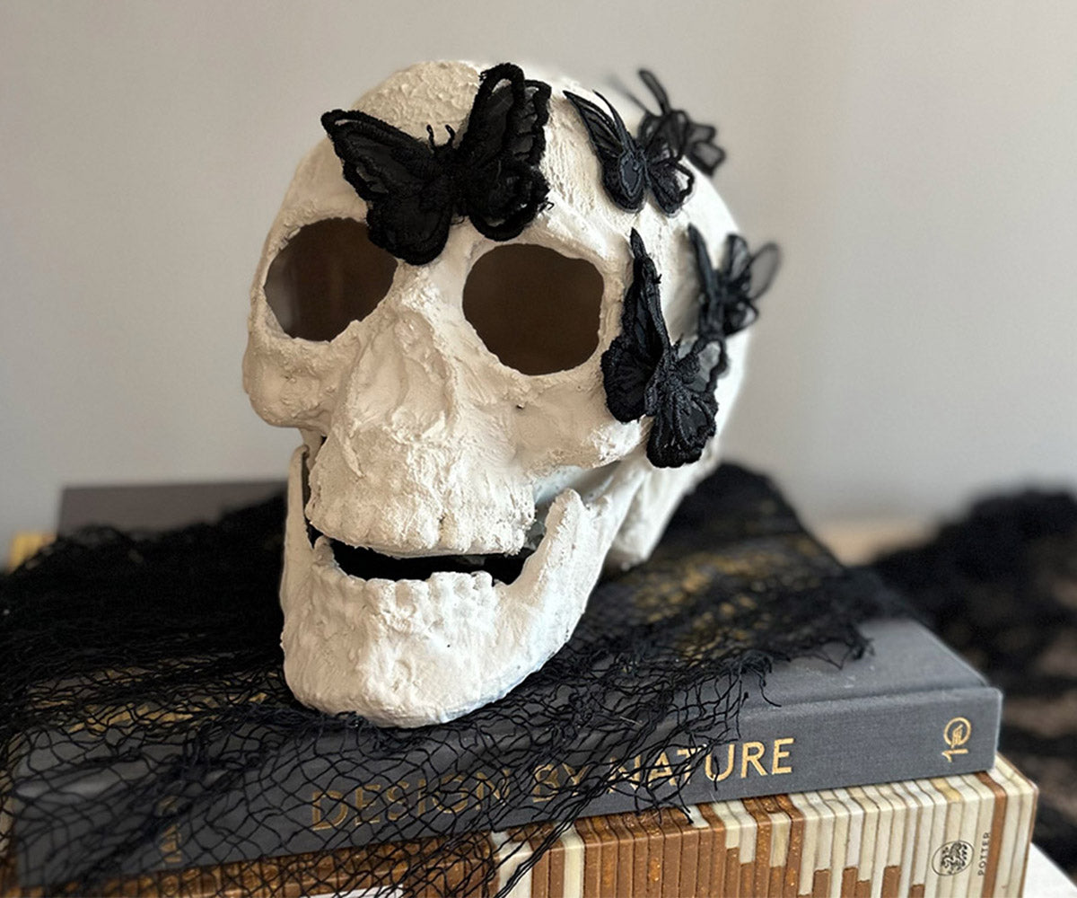 Once paint is dry you can move to the final step of hot gluing the butterflies to your skull.